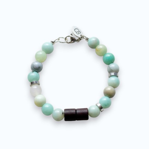 Elegant and stylish, this men's bracelet is meticulously handcrafted using the finest quality gemstones. The light shades of green, sand, and grey tones of amazonite make this bracelet an ideal accessory for an Italian smart or casual chic style for men. It pairs perfectly with a darker brown bracelet or leather watch, enhancing its brilliance.