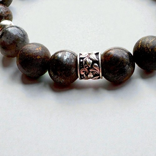 Complementing Larvikite, this bracelet features the rich, dark brown tones of Bronzite. Historically, the Romans revered to Bronzite also as a protective stone, valued for maintaining mental sharpness.