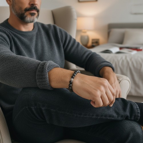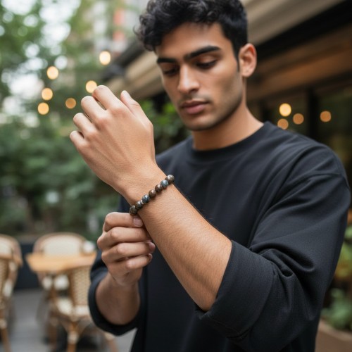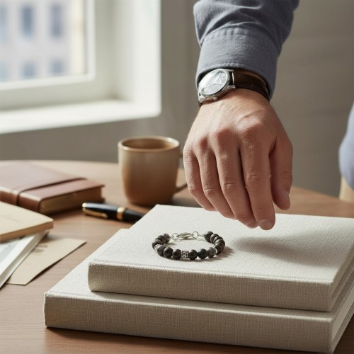 Elegant and stylish, this men's bracelet is meticulously handcrafted using the finest quality gemstones and pure Sterling silver.